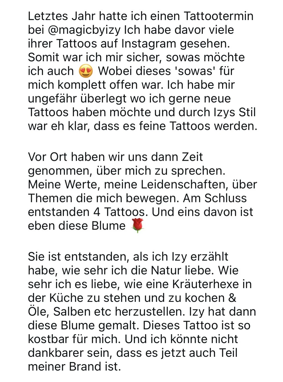 Izy draws your design with you directly in the studio. The reason for this is that she wants to see you and create a tattoo uniquely for you and your energy – like your personal medicine.